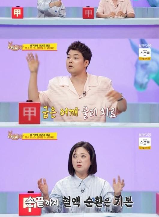 이어 김연경에게 등짝을 맞아본 전현무와 김숙은 "라운드 어깨가 펴진 느낌이다", "손끝까지 피가 싹 돌더라"며 당시 느낀 감각을 생생하게 표현했다.