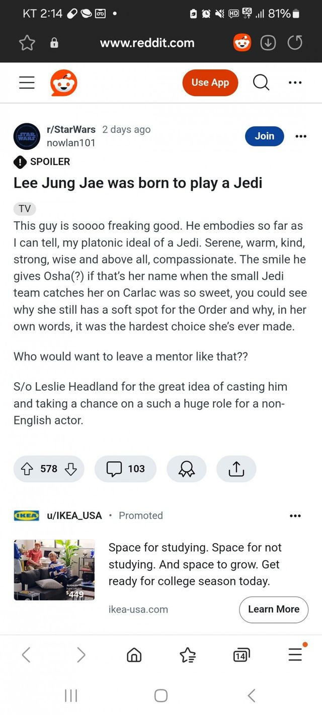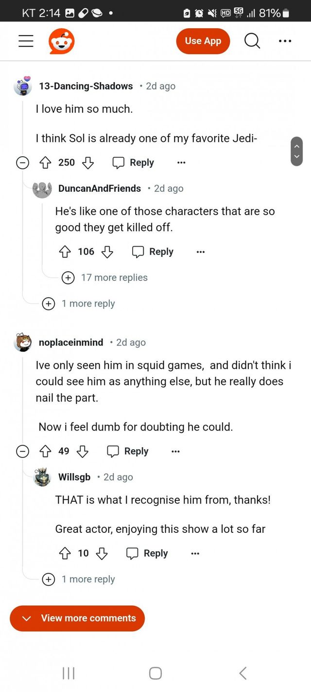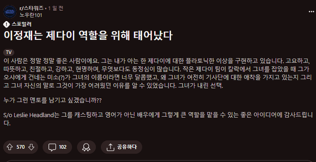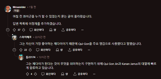 이정재와 솔은 팬들이 바래왔던 현명하면서 인자하고 선량한 제다이 그 자체를 완벽히 묘사했다고.