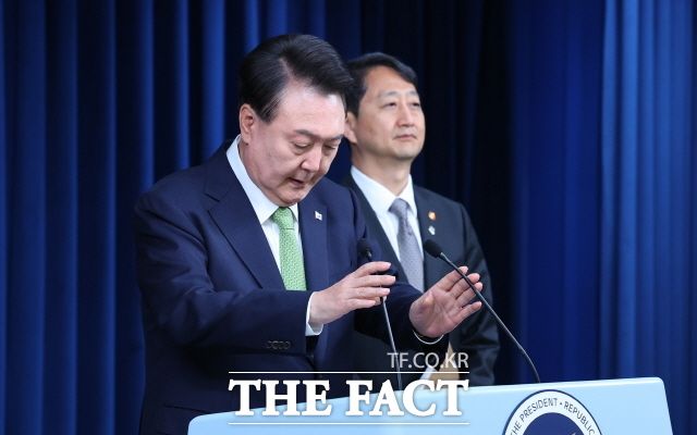 [더팩트ㅣ용산=박숙현 기자] 22대 총선 이후 두 달째 윤석열 대통령 지지율이 하락세를 이어가면서 국정운영에도 '비상등'이 켜졌다. 채상병 사망사건 수사 외압 의혹과 맞물려 '안보' 의제를 야권에 넘겨주면서 전통 지지층까지 등을 돌린 모양새다. 윤 대통령은 이르면 이달 말 중폭 개각을 단행해 반등을 꾀할 전망이다. 참신한 인사와 함께 보수층을 결집할 수 있는 섬세한 메시지 관리와 행보가 필요하다는 지적이 나온다.