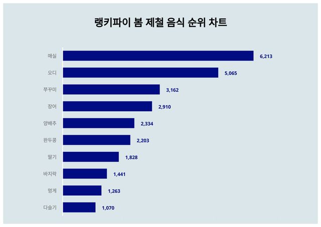 ▲봄 제철 음식 트렌드 지수 분석 결과 ⓒ랭키파이