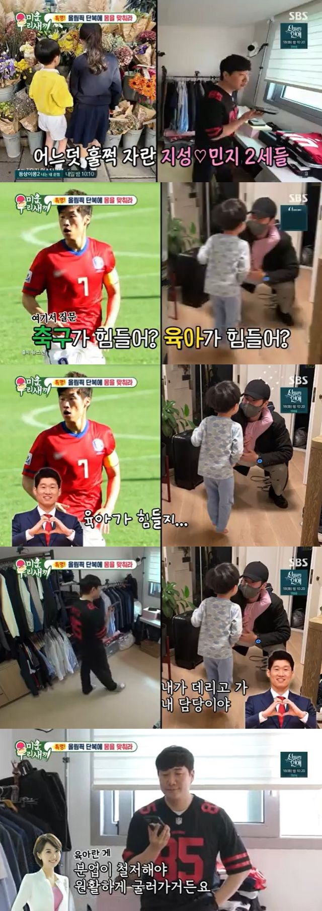 배성재는 박지성에 "축구가 힘드냐 육아가 힘드냐"고 물었고 박지성은 1초의 망설임도 없이 "육아가 힘들지"라고 답해 웃음을 자아냈다.