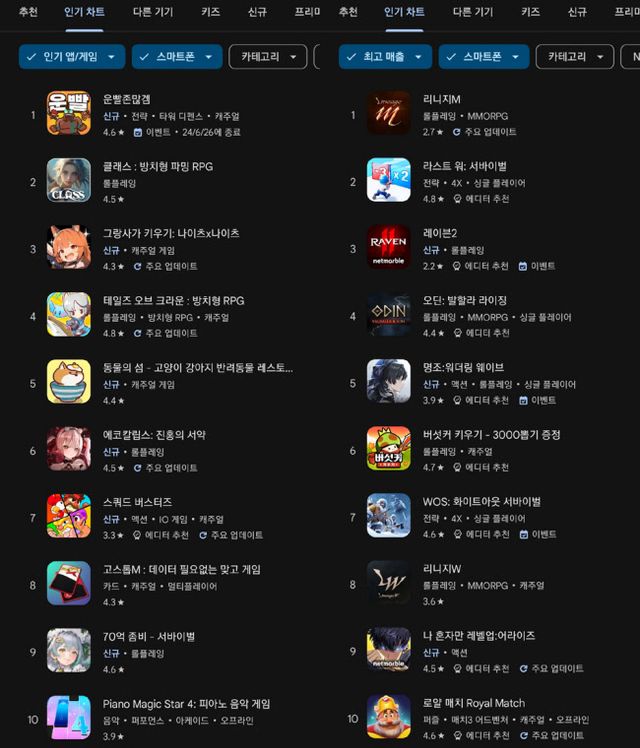 주간 순위는 모바일 게임 구글 플레이 기준 순위를 통해 1주간 어떤 게임들이 유저들의 주목을 받았는지 살펴보는 코너다.
