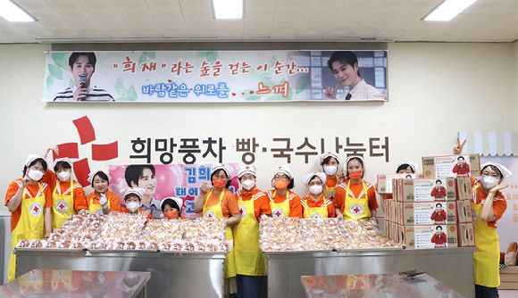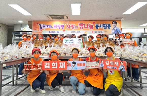 [조이뉴스24 류한준 기자] '선한 영향력.' 대한적십자사가 가수 겸 뮤지컬 배우 김희재 팬클럽인 '김희재와 희랑별'이 김희재의 30번째 생일(6월 9일)을 기념해 제빵봉사를 진행했다고 10일 밝혔다. 이번 봉사는 지난 6일부터 8일까지 서울을 비롯해 전국 5개 지역(안양, 광주, 부산, 창원, 울산)에서 진행됐다.
