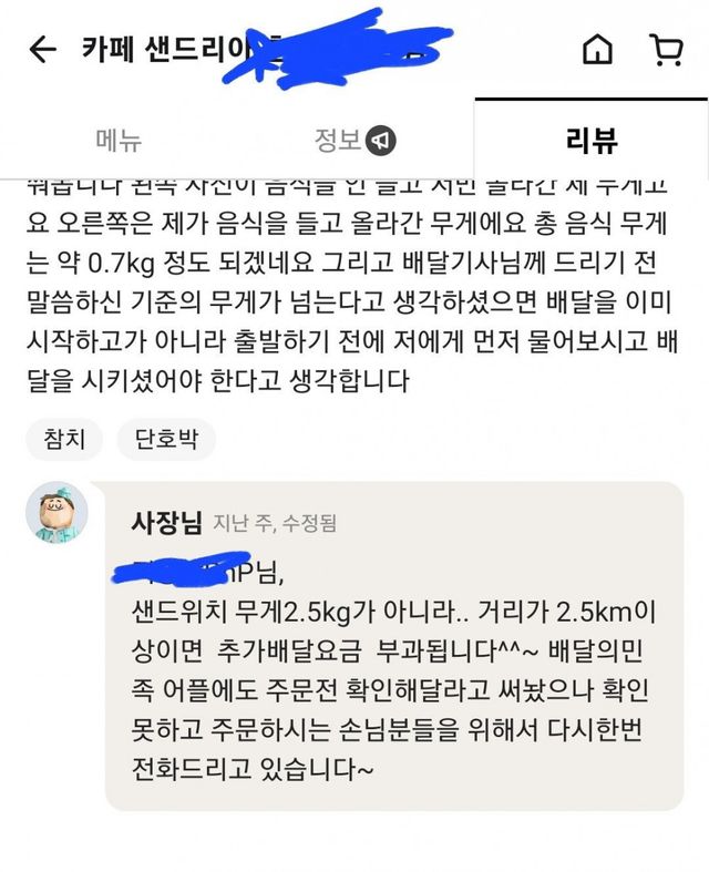 배달거리 2.5km넘어서 1000원추가요금 붙는데