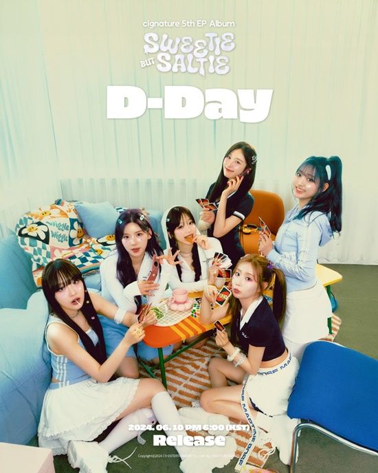 10일 오후 서울 마포구 신한카드 SOL페이 스퀘어 라이브홀에서 시그니처(채솔·지원·셀린·클로이·세미·도희) 다섯 번째 EP 앨범 '스위티 벗 솔티(Sweetie but Saltie)' 발매 기념 쇼케이스를 개최했다.