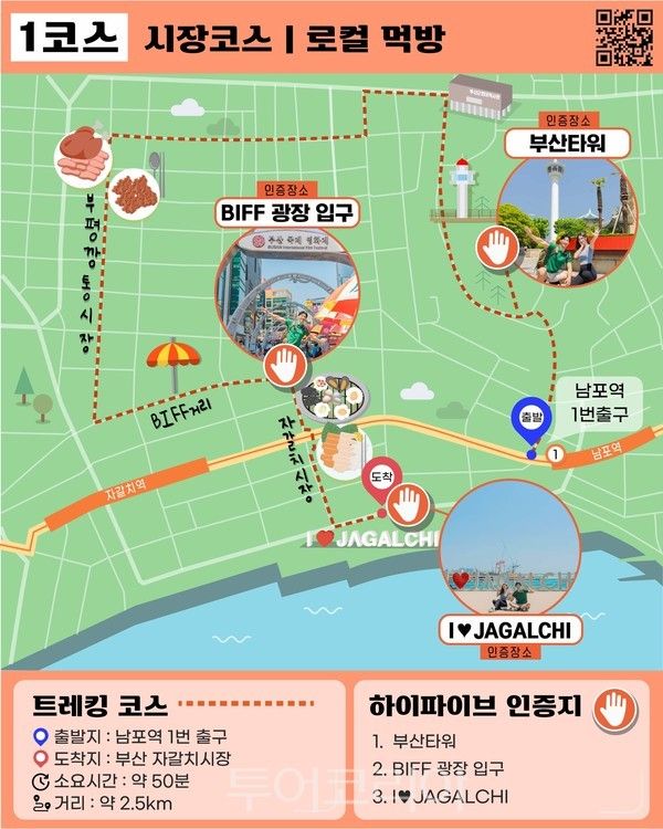 트레킹 코스는 △시장코스(자갈치시장) △K-POP(감천문화마을) △야간관광(광안리) △트레킹(흰여울문화마을) △애견동반(을숙도) 5개 테마 코스로 구성되었다.