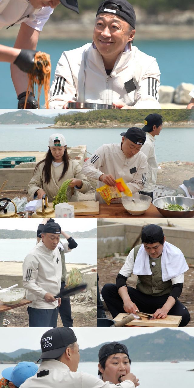 그런가 하면 평소에도 요리를 자주 한다는 김성균은 생선 손질 실력을 뽐낸다. 또한 자신이 손질한 생선을 넣고 오직 무인도에서만 먹을 수 있는 특별한 미역국까지 끓인다. 이어 경수진은 양념 담당으로서 다양한 요리에 쓰일 양념들을 척척 만들어냈다고 해 궁금증을 증폭시킨다.