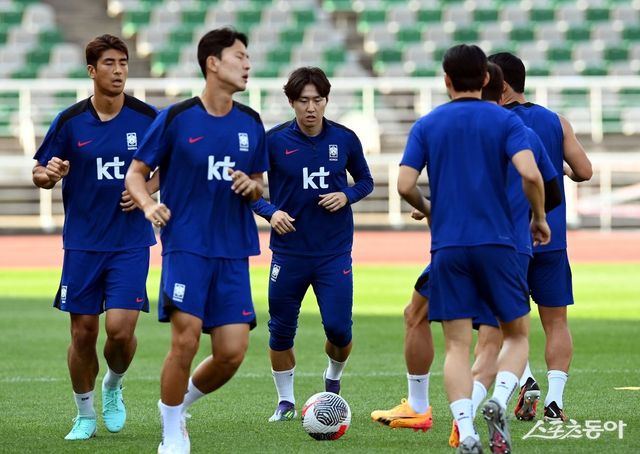 축구국가대표팀이 9일 고양종합운동장에서 북중미월드컵 아시아 2차 예선 중국과 홈경기에 대비해 훈련 중이다. 고양 | 김민성 기자 marineboy@donga.com