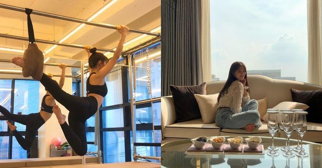 사진 속 김혜윤은 운동복을 입고 유연함을 자랑하며 필라테스로 몸매를 가꾸고 있었다.