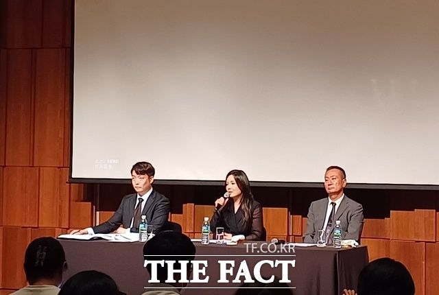백현이 설립한 회사 INB100 측이 SM에 부당한 요구를 중단하라고 촉구하는 기자회견을 열었다. 왼쪽부터 이재학 변호사, 차가원 회장, 김동준 대표. /정병근 기자