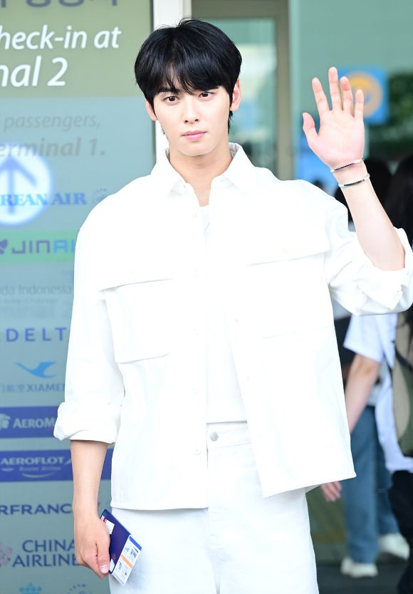 10일 오전 쇼메(CHAUMET)의 갈라디너 행사에 참석하기 위해 출국한 차은우의 공항패션이 화제다.