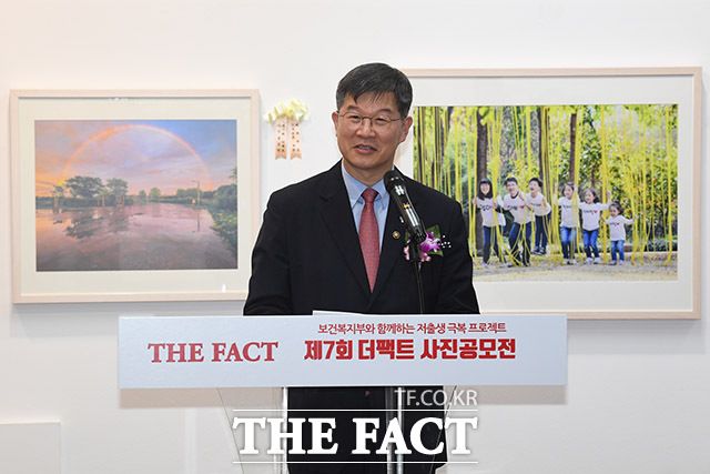 <사진이 '더'팩트다>' 시상식 찾은 이기일 보건복지부 1차관이 축사를 하고 있다.