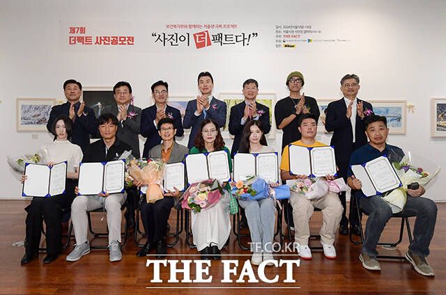 [더팩트ㅣ장윤석 기자] '보건복지부와 함께하는 저출생 극복 프로젝트 <사진이 '더'팩트다>' 시상식이 10일 오후 서울 중구 서울시청 시민청 갤러리에서 열린 가운데 김상규(가운데) 대표이사를 비롯한 내빈과 수상자들이 기념 촬영을 하고 있다.
