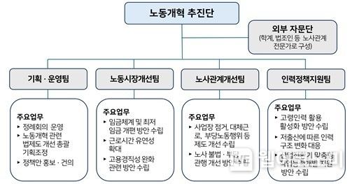 추진단은 정례회의를 개최해 노동개혁 추진 상황을 점검하고 노동개혁 핵심 제도 개선 과제에 관한 ‘노동정책이슈보고서’를 발간할 예정이다.