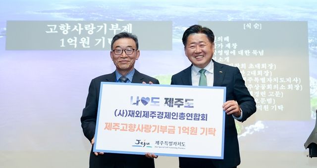 [한라일보] 재외제주경제인총연합회가 제주고향사랑기부금으로 총 1억원을 기탁하는 등 고향사랑에 앞장서고 있다.