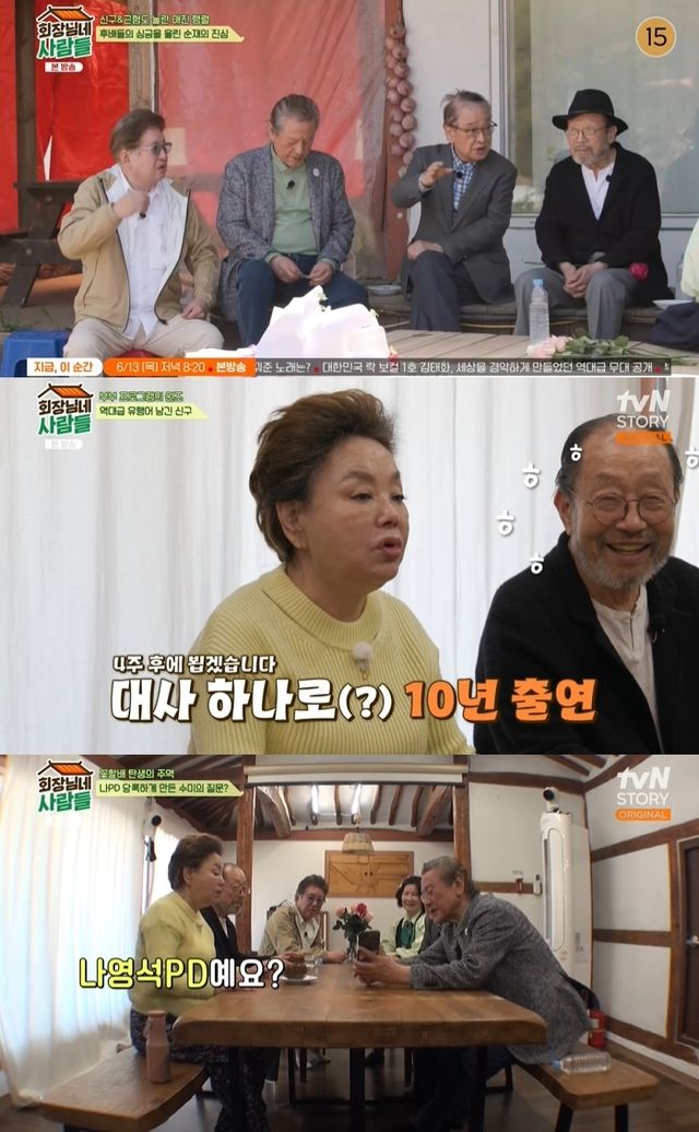 10일 방송된 tvN STORY '회장님네 사람들'에서는 대한민국 대표 원로배우이자 '꽃할배' 멤버들인 이순재, 신구, 박근형이 회장님네를 방문했따.
