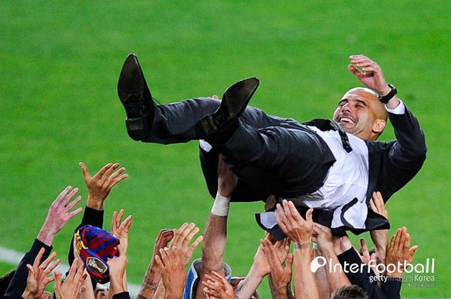 과르디올라 감독은 바르셀로나를 이끌고 유럽축구연맹(UEFA) 챔피언스리그(UCL)마저 우승으로 장식하며 트레블을 완성했다. 이듬해엔 바르셀로나 역사에 남을 6관왕을 기록했다. 2011-12시즌 이후 건강을 이유로 사임하기 전까지 무려 14개의 트로피를 거머쥐었다.