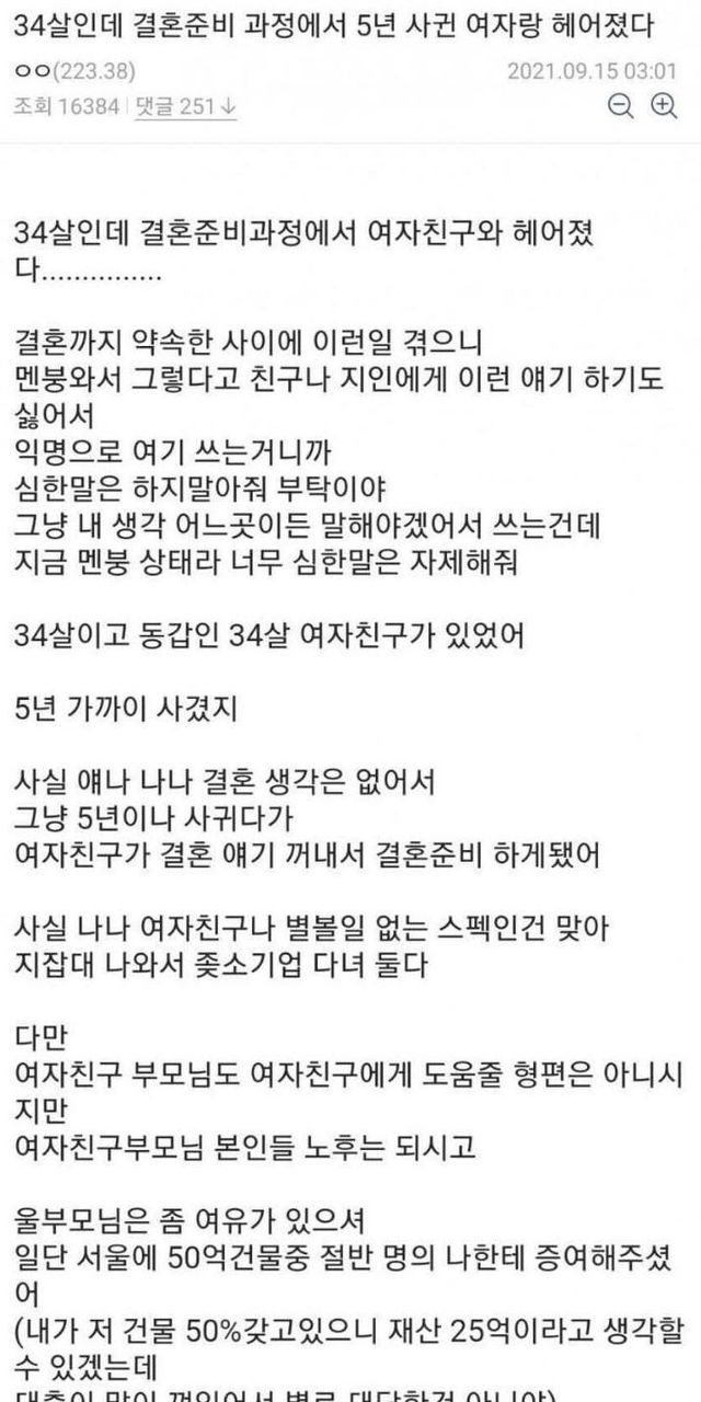 34살인데 결혼준비 과정에서 5년사귄 여자랑 헤어졌다 …