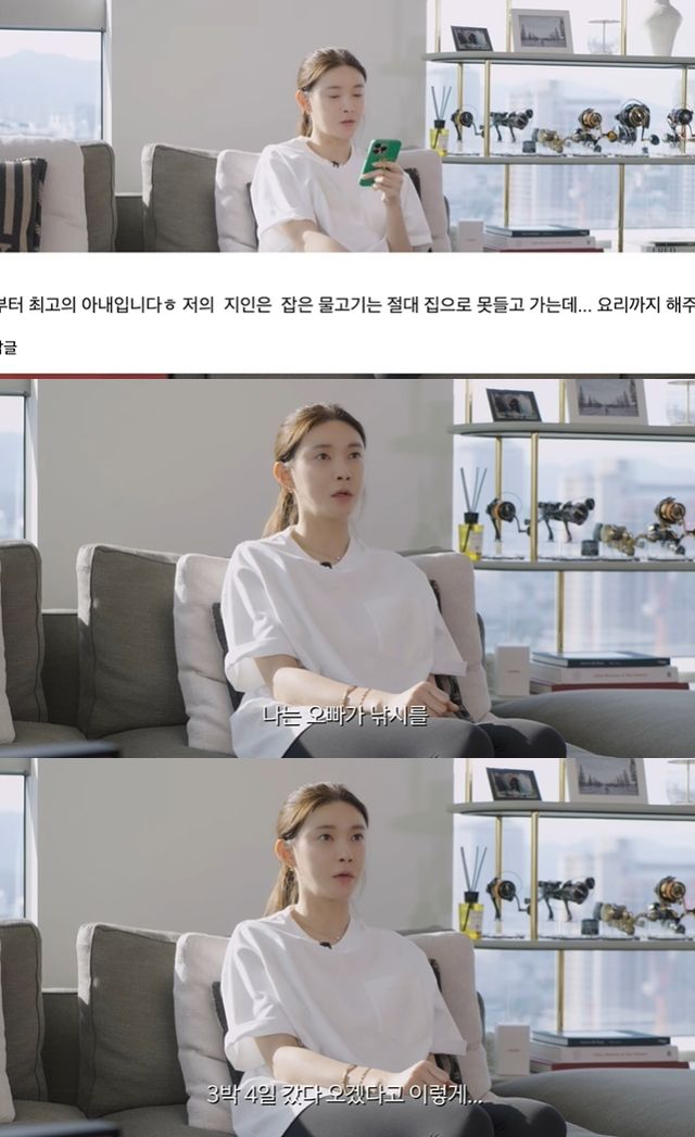 차예련은 "1년에 3박 4일인데, 그냥 시원하게 낚시 보내주면 다녀와서 더 잘 한다"며 쿨한 면모를 보였다.