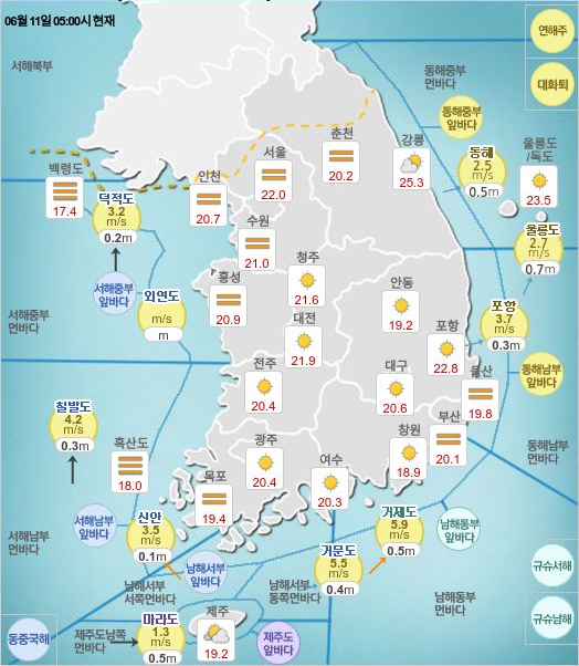 6월 11일 전국 날씨는 다음과 같다.