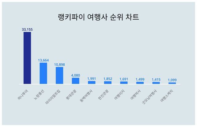 현재 하나투어는 33,155포인트로 선두를 달리고 있는 것으로 나타났다.