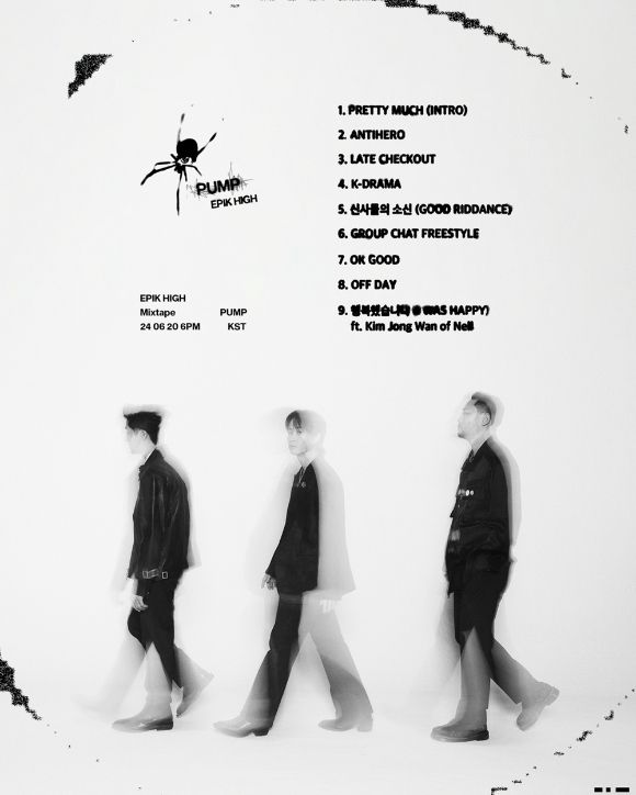 에픽하이(타블로, 투컷, 미쓰라)는 지난 10일 공식 SNS를 통해 신보 'PUMP(펌프)'의 트랙리스트 이미지를 공개했다.