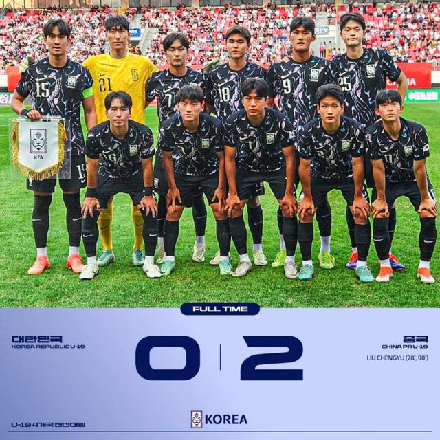 이창원 감독이 이끄는 한국 U-19 축구 대표팀이 중국과의 국제 친선대회에서 아쉬운 패배를 기록했다. / 대한민국 축구 국가대표팀 공식 인스타그램