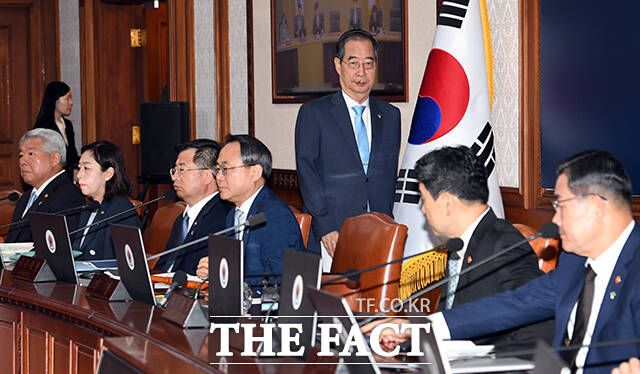 [더팩트ㅣ임영무 기자] 한덕수 국무총리가 11일 오전 서울 종로구 정부서울청사에서 열린 국무회의에 참석해 모두발언을 하는 가운데 입술이 부르터있다.