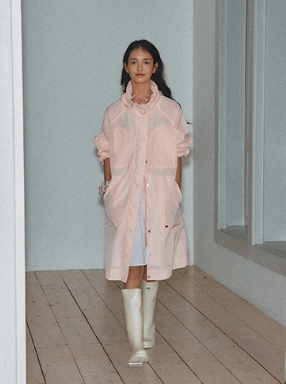 몽클레르의 ‘쿠루 롱파카’는 트랜드에 구애받지 않는 클래식한 디자인에 하이 넥과 허리라인을 강조한 레인코트입니다. 내부 스트링으로 신축성이 좋은 벨트를 취향에 따라 조절하면 비가 와도 페미닌한 스타일을 연출할 수 있는데요. 양방향 지퍼와 측면의 웰트 포켓으로실용적입니다. 몸에 딱 맞게 감기는 가벼운 착용감을 자랑하는 몽클레르의 레인코트는 비가 오지 않아도 변덕스러운 여름 날씨에 걸치기에 제격이죠.