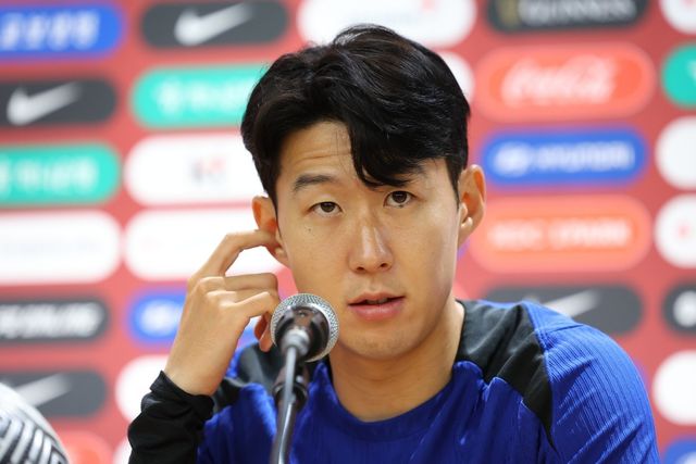 축구대표팀 주장 손흥민이 지난 10일 오후 경기도 고양종합운동장에서 열린 공식 기자회견에서 경기에 임하는 각오를 밝히고 있다. / 연합뉴스