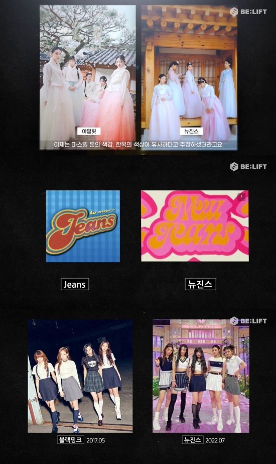 뿐만 아니라 이들은 뉴진스의 스타일링이 다른 아이돌들로부터 영향을 받았다면서 블랙핑크(BLACKPINK), 오마이걸, 르세라핌 등의 스타일링을 예시로 공개했다.