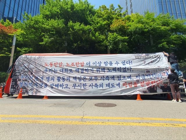전국삼성전자노동조합이 29일부터 홍보트럭을 활용해 24시간 농성 투쟁에 나선다. 사진=김현호 기자
