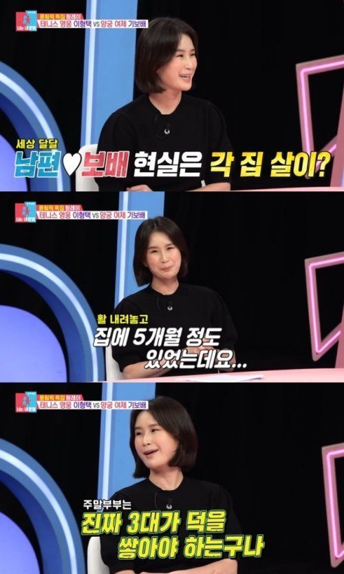 이어 기보배는 “사사건건 다 제가 신경 쓰게 되고 잔소리하게 되고 부딪히는 게 많이 생겼다"라며 "그래서 '주말부부는 3대가 덕을 쌓아야 한다'라는 말이 왜 있는지 알 것 같았다. 그걸 체감했다”고 답했다.