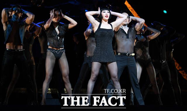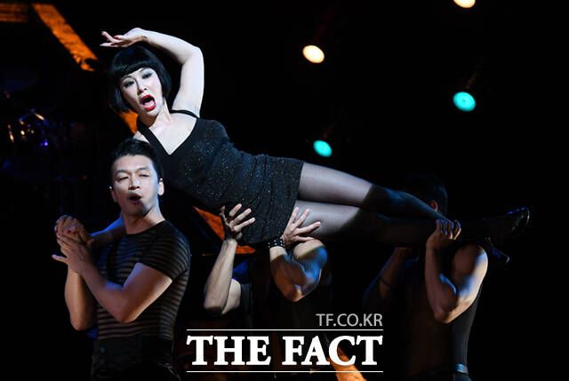 [더팩트ㅣ이새롬 기자] 배우 정선아가 11일 오후 서울 구로구 디큐브 링크아트센터에서 열린 뮤지컬 '시카고' 프레스콜 행사에서 시연하고 있다.