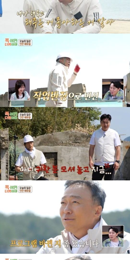 김명진 PD는 "영화 홍보 때문에 나온 건 아니다. 사실 '안싸우면 다행이야'(안다행) 때부터 출연하기로 했는데 스케줄이 안 맞아서 두 번 불발됐다. 이번에 제작진이 먼저 이야기를 드렸더니 흔쾌히 가시겠다고 해서 함께하게 됐다. 너무 소탈하시고 너무 좋으시더라. 무인도 객실의 확장 공사가 필요했는데 일을 다 하셨다. 편집해서 짧게 나간 것이지 실제로 일을 다 하셨다"라며 섭외 비화를 들려줬다.