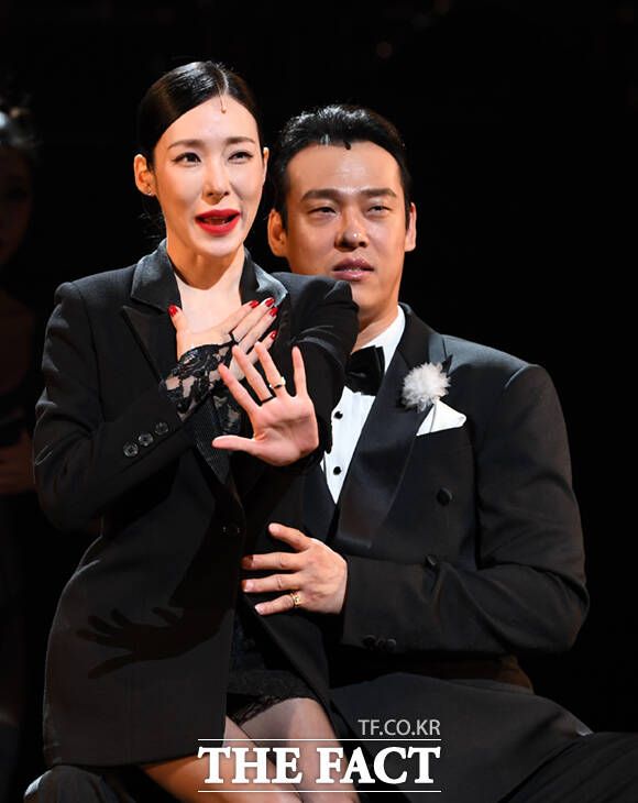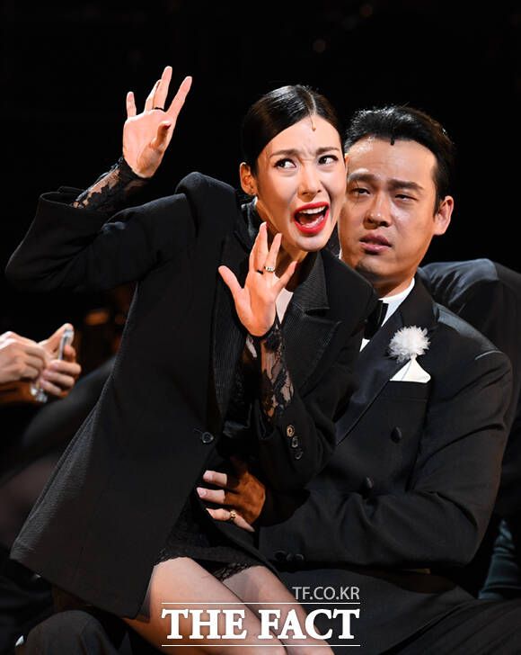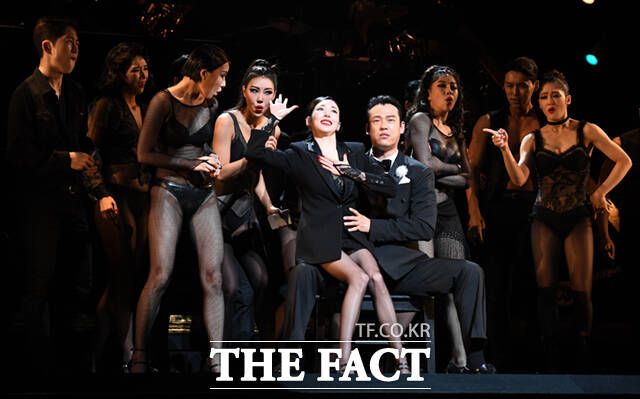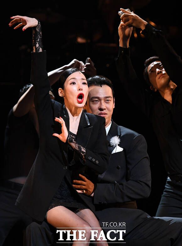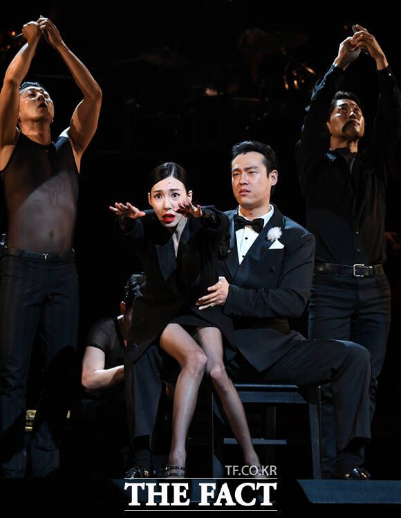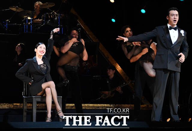 [더팩트ㅣ이새롬 기자] 소녀시대 티파니 영과 배우 최재림이 11일 오후 서울 구로구 디큐브 링크아트센터에서 열린 뮤지컬 '시카고' 프레스콜 행사에서 시연하고 있다.
