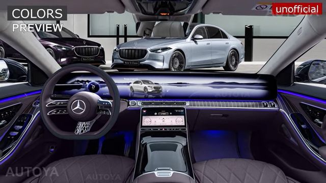 더 구체적으로는 화려한 외관 색상뿐만 아니라 새로운 스티어링 휠과 전체 대시보드를 가로지르는 파노라마 와이드 LED 스크린을 갖추고 있다. 이는 현재의 S클래스에서 사용되는 세로형 중앙 디스플레이와 대조된다.