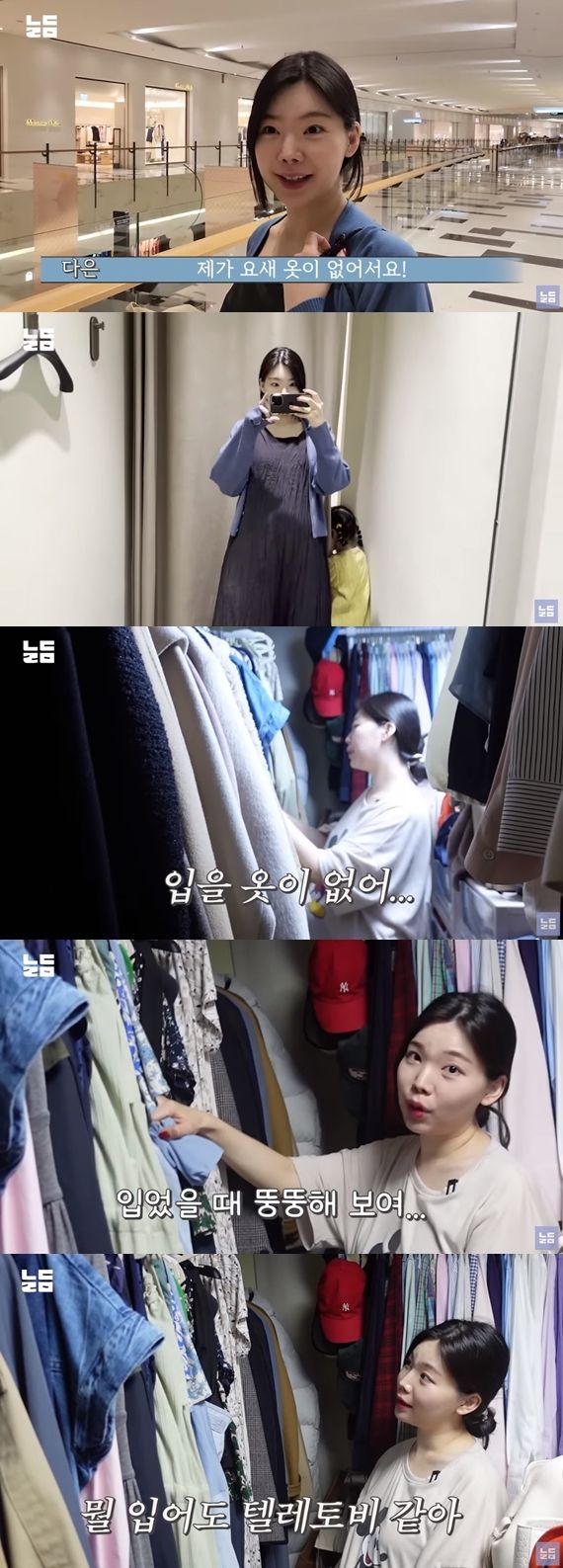 이다은은 "입을 옷이 없다. 최근에 꽤 샀는데 지금 입고 싶은 옷은 아니다. 이것도 오빠랑 산 건데, 뭔가 입었을 때 뚱뚱해 보인다. 뭘 입어도 텔레토비 핏이다. 텔레토비, 펭귄 핏"이라며 고충을 토로했다.