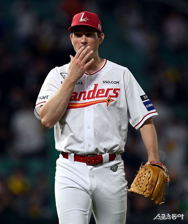 30일 인천 SSG 랜더스필드에서 ‘2024 신한 SOL 뱅크 KBO리그’ SSG 랜더스와 LG 트윈스의 경기가 열렸다. SSG 선발 앤더슨이 6회까지 LG 공격을 2실점으로 막은 후 더그아웃으로 향하고 있다. 인천 | 김민성 기자 marineboy@donga.com