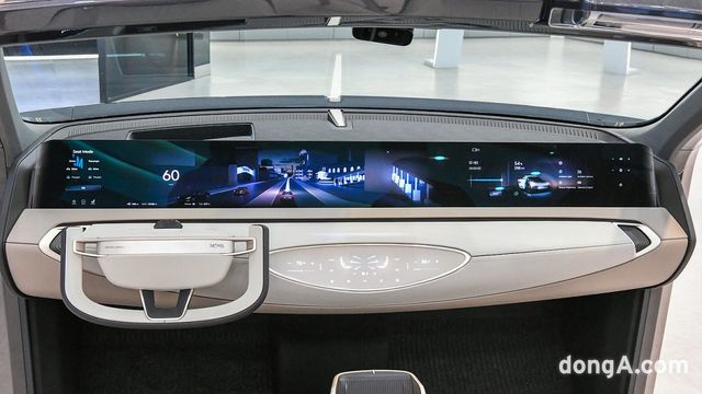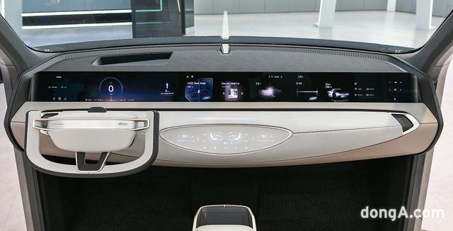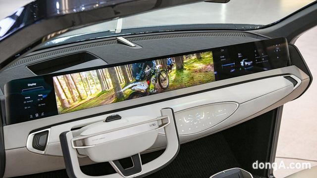 디스플레이 패널은 전체가 위나 아래로 움직이고 기울기가 조절되는 가변형 시스템을 채택했다. 운전 상황에 맞춰 화면 크기와 위치가 최적화돼 필요한 정보를 표시한다. 가령 일반 드라이브모드에서는 패널 일부가 대시보드 아래로 내려가 작은 사이즈의 디스플레이로 전환하고 영상 콘텐츠를 감상하는 ‘극장모드’나 휴식을 취하기 위한 ‘릴렉스모드’에서는 아래로 내려가는 운전대와 좌석 기울기에 맞춰 디스플레이 기울기와 크기가 자동 조절되는 방식이다.