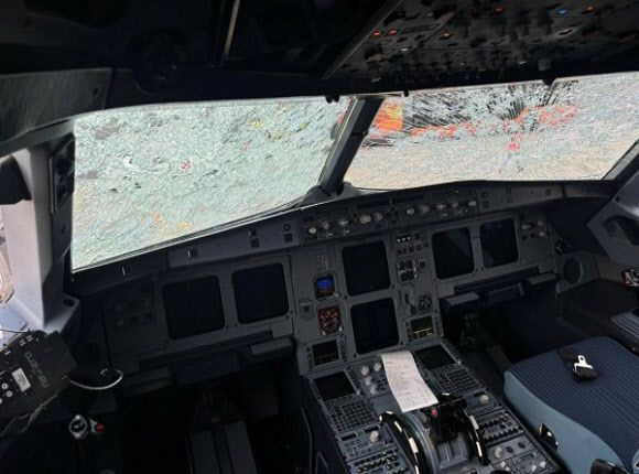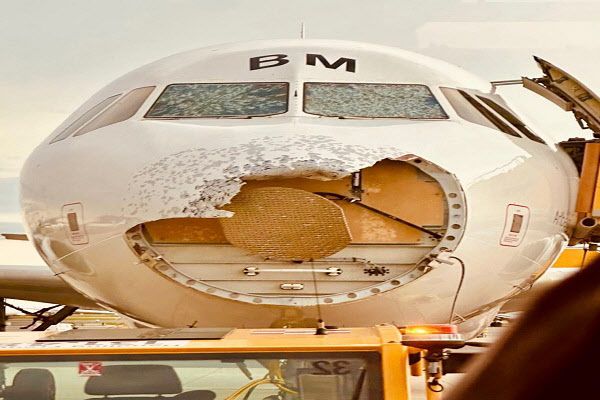 여객기는 레이돔(비행기 레이더의 안테나 덮개)과 코 부분 패널이 손상됐다. 조종석 쪽 유리창도 산산조각 났다.
