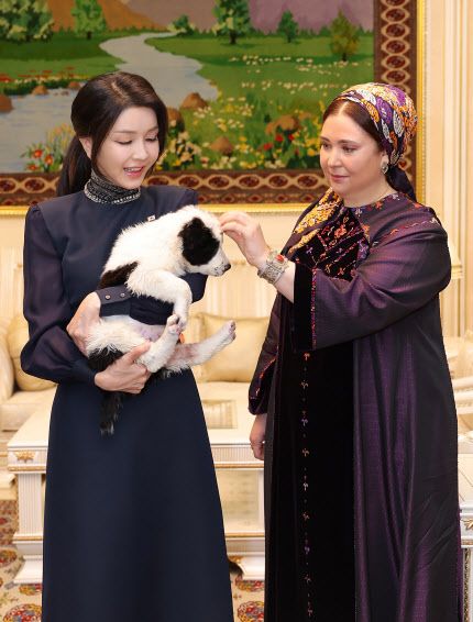 이에 김 여사는 “투르크메니스탄의 보물인 알라바이를 선물해주셔서 매우 영광”이라며 “양국 협력의 징표로서 소중히 키워나가고 동물 보호 강화를 위해 더 힘쓰겠다”고 화답했다.