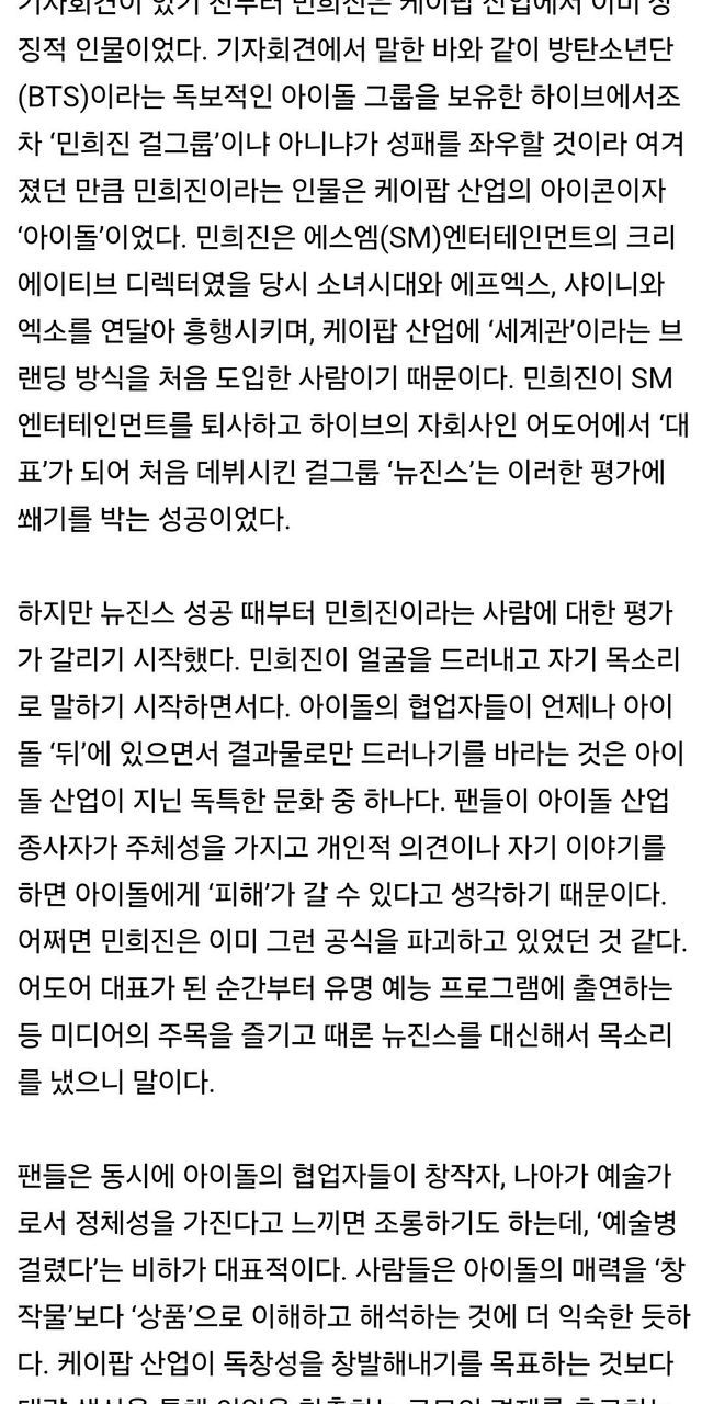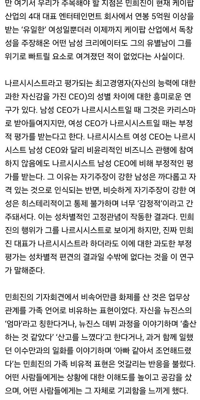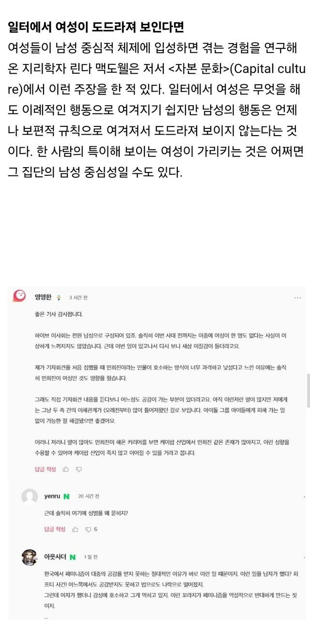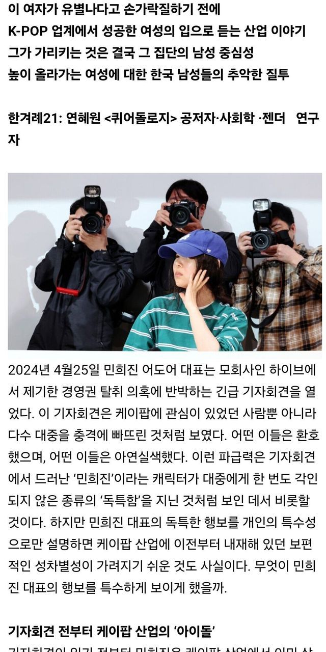 꿀잼 한국 페미니즘 발표: “민희진은 여자라는 이유로 남자들에게 공격받는것”