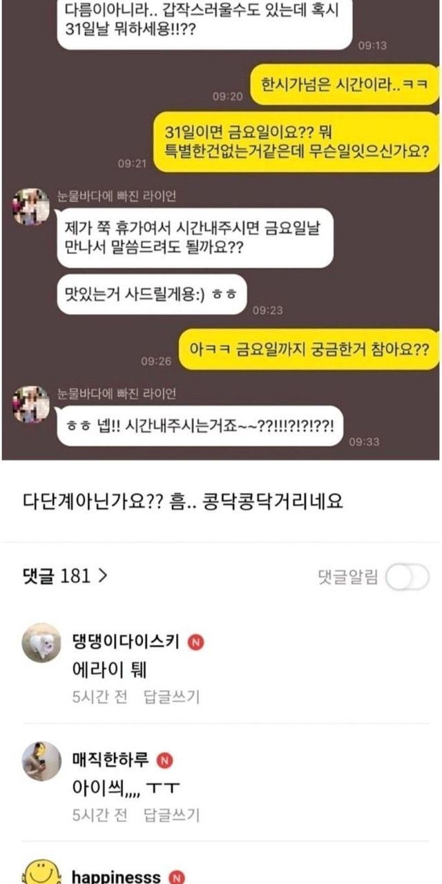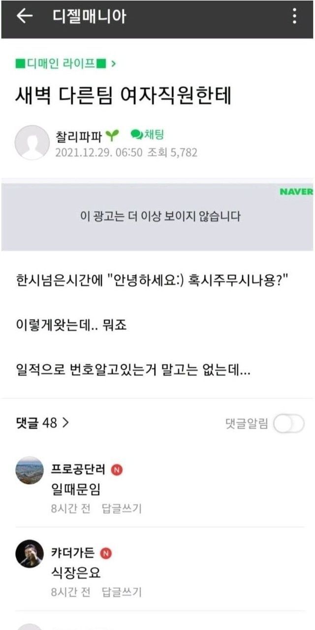 새벽 1시 여직원한테 연락온 디매인