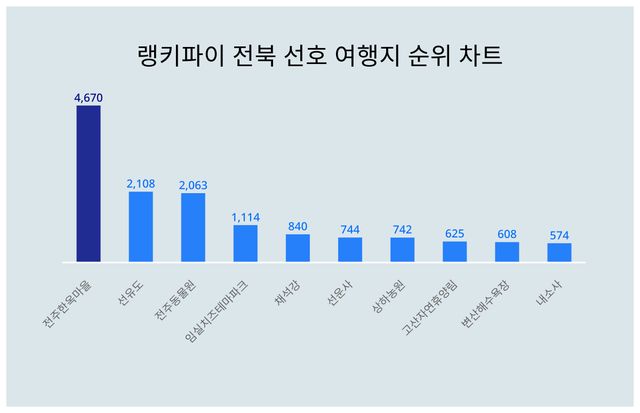 ▲전북 선호 여행지 트렌드 지수 분석 결과 ⓒ랭키파이