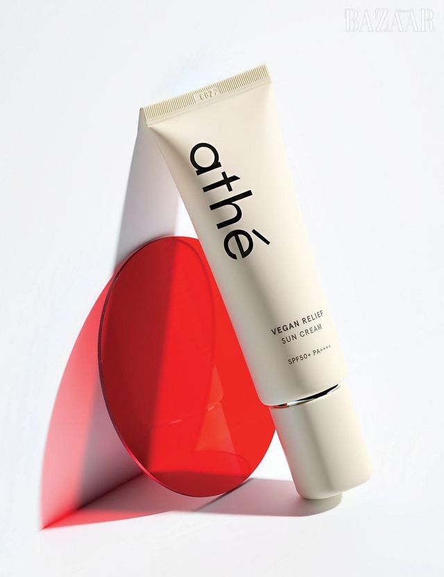 Athé 비건 릴리프 무기자차 선크림 SPF50+/ PA++++ 상앗빛 제형이 홍조를 커버하고 진정에 효과적인 병풀, 녹차 추출물이 자극받아 붉어진 피부를 가라앉히는 일명 ‘붉은 기 잡는 선크림’. 무기 자외선차단제이지만 건조하지 않고 편안하다. 4만2천원. 에디터/ 박경미