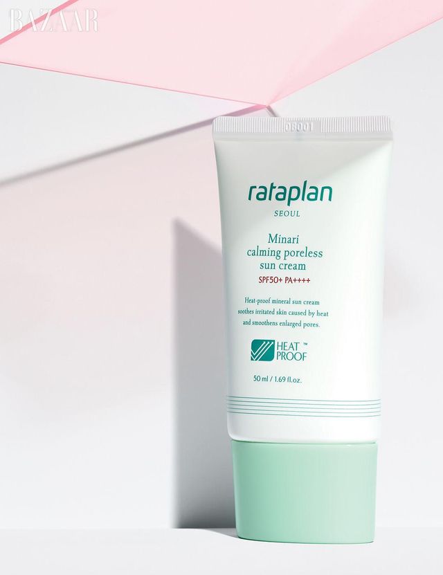 Rataplan 미나리 진정 포어리스 선크림 SPF50+/ PA++++ 외부 열을 차단하는 기술이 적용돼 피부 자극, 모공 늘어짐 등의 문제를 예방한다. 또한 미나리 추출물이 열로 인해 붉어진 피부를 완화한다. 들뜸 없이 피부톤을 자연스럽게 밝히는 무기 자외선차단제. 2만5천원.
