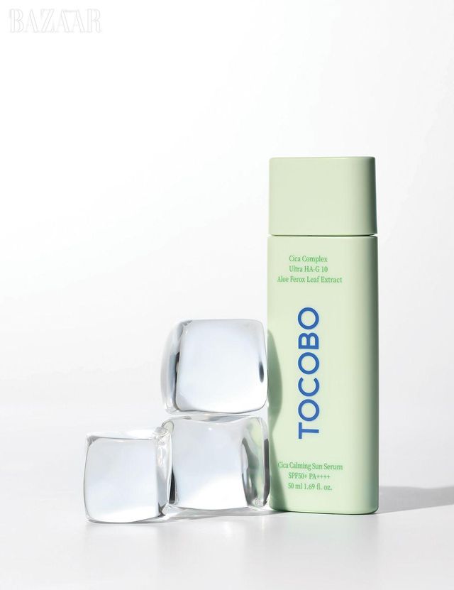 Tocobo 시카 카밍 선 세럼 SPF50+/ PA++++ 피부 온도를 낮추는 효과가 입증된 쿨링 자외선차단제로 운동하기 전이나 야외 활동 중 바르기 제격. 수분감이 느껴지며 눈시림이 없다. 2만4천원.