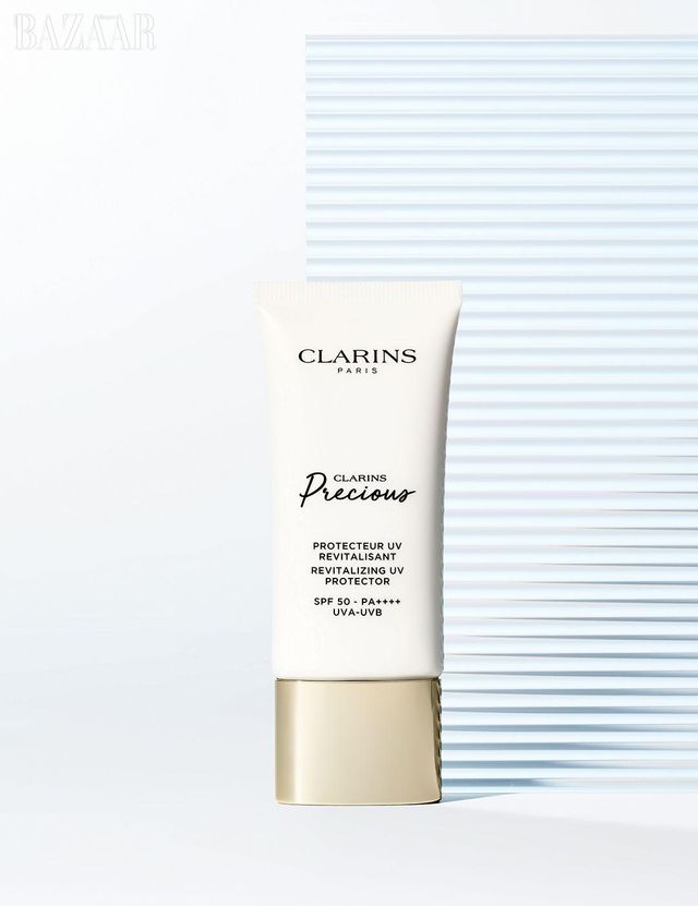 Clarins 프레셔스 프로텍터 UV 리바이탈리상트 SPF50/ PA++++ 1년에 단 하루 만개하는 문라이트 선인장 꽃 추출물이 주름을 옅게 한다. 미세한 펄이 함유돼 건강한 광이 감도는 피부를 만들며 오랜 시간 무너짐 없이 유지된다. 16만원대.