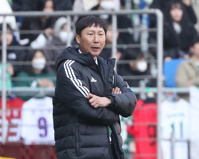 2023년 2월 25일 울산 문수 축구경기장에서 열린 프로축구 하나원큐 K리그1 울산 현대와 전북 현대의 경기에서 전북 김상식 감독이 경기를 지켜보고 있다. / 연합뉴스